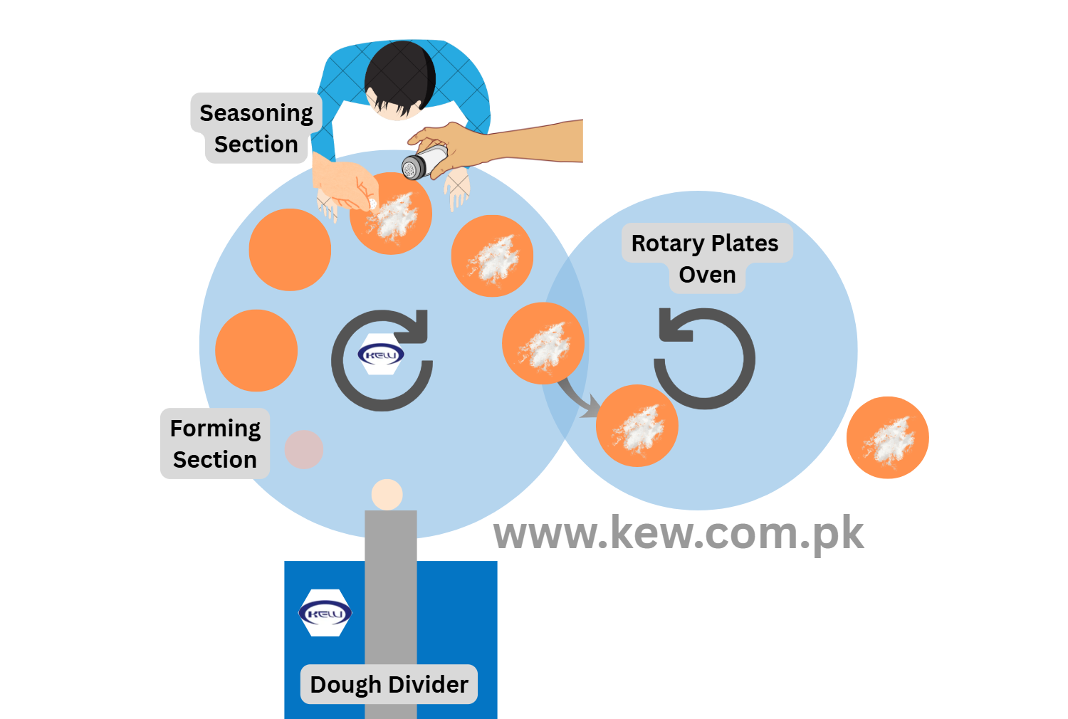 The system can be seamlessly integrated with Dough Divider and Dough Press machines, enabling a fully automated production line—from dough portioning and shaping to final baking—significantly reducing labor while improving consistency and efficiency.
